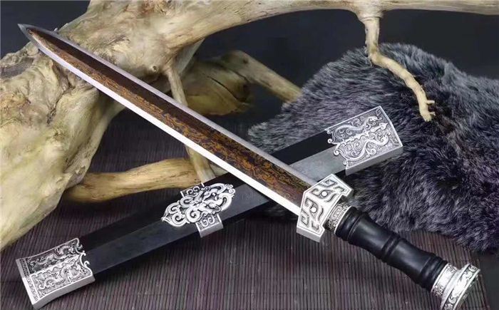 刘备战剑-12寸花纹钢八面发红乌木 全长:53 刃长:31 刃宽:3.8 刃厚:1重1千克高硬度砍铁不卷刃 其它:送锦盒剑油