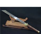 锦衣卫天蛮斩 全长:76cm 刃长:50cm 柄长:22cm 刃宽:4.2cm 刃厚:0.75cm 刃材:高锰钢 装具:合金 鞘材:花梨木 净重:1.5kg 工艺:古法锻造千锤百炼, 十五道手工研磨 嵌铜工艺是龙泉宝剑制造的传统工艺,有2000多年的历史, 需要经验丰富的老师傅细心的完成,这项工艺非常的费时费力, 堪称龙泉宝剑制作过程中最复杂最精细的一道程序!