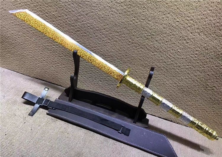 升级版亁隆战刀 全长:91cm 刃长:50cm 刃宽:4.6cm 厚:0.7cm 重:1.80kg 手工锻打砍竹砍铁丝秒斩矿泉水瓶非常霸气值得收藏