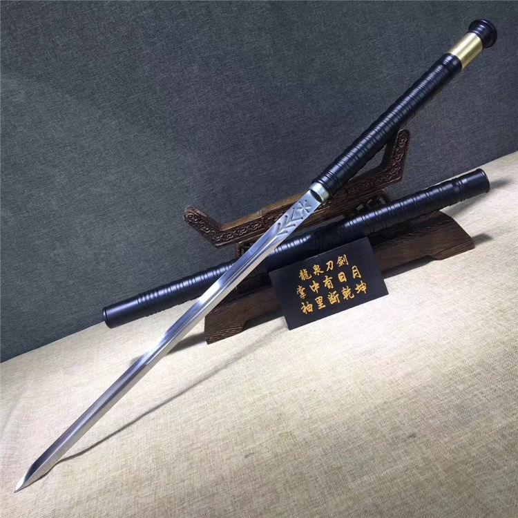 剑身高锰制做硬度60砍铁丝不伤韧、剑鞘采用高精密无缝钢管、手柄包铜圈、粗旷大气