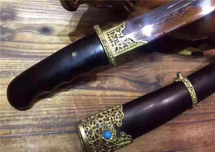 全铜镂空黑檀木花纹钢发红波斯刀 全长:46 刃长:31 刃宽:3.8 全手工制作煅打十二道研磨收藏