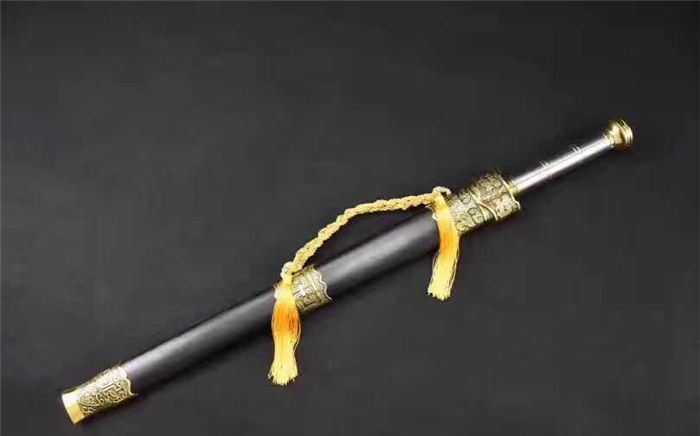 加强版三国剑2代 全长:83cm 刃长:54cm 柄长:25cm 刃宽:4cm 厚度:0.7cm 刃材:高锰钢 鞘材:乌木 装具:合金 净重:1.5kg 工艺:古法锻造千锤百炼,十五道手工研磨送锦盒剑油