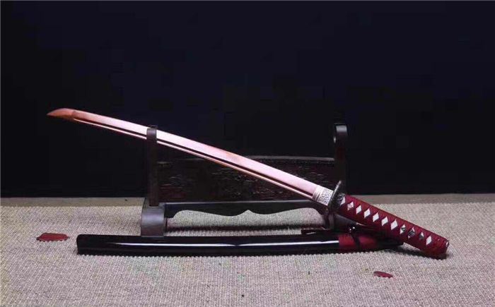 发红高锰武士刀 总长:78cm 刃长:52cm 柄长:23cm 刃宽:3.2cm 刃厚:0.7cm 重量:0.9kg 刃材:高猛工艺处理 送锦盒剑油