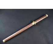 全长:80cm 刃长:51cm 柄长:24cm 刃最宽处:3.1cm 厚度:0.5cm 刃材:花纹钢发红 鞘材:花梨木 装具:合金 净重:0.85kg 工艺:古法锻造,十五道手工研磨送锦盒剑油