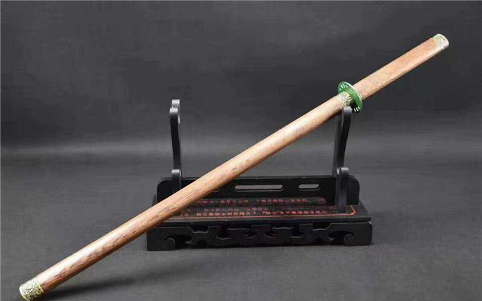 全长:104cm 刃长:74cm 柄长:26cm 刃宽:3.5cm 厚度:0.7cm 刃材:中碳钢烤蓝 鞘材:花梨木 装具:合金 净重:1.5kg 工艺:古法锻造千锤百炼,十五道手工研磨