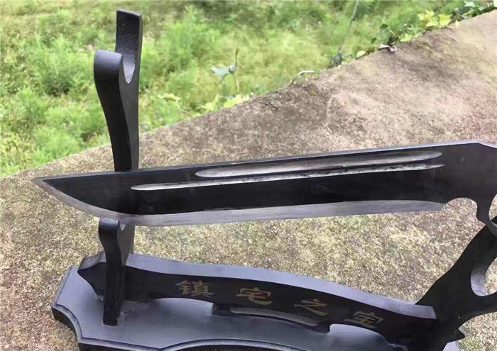 全长:45Cm 刃长:28Cm 柄长:16Cm 锰钢高硬度焠火,砍铁不卷刃,开大血槽,方头圆头头两款可选 配皮套送锦盒剑油