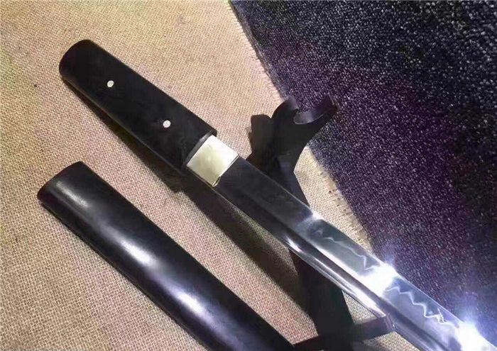 正宗黑檀T10烧刃直款小唐刀 全长:51 刃长:32 刃宽:3.2 手工研磨锻打削纸砍竹砍铁丝轻松过矿泉水瓶值得拥有收藏送锦盒剑油