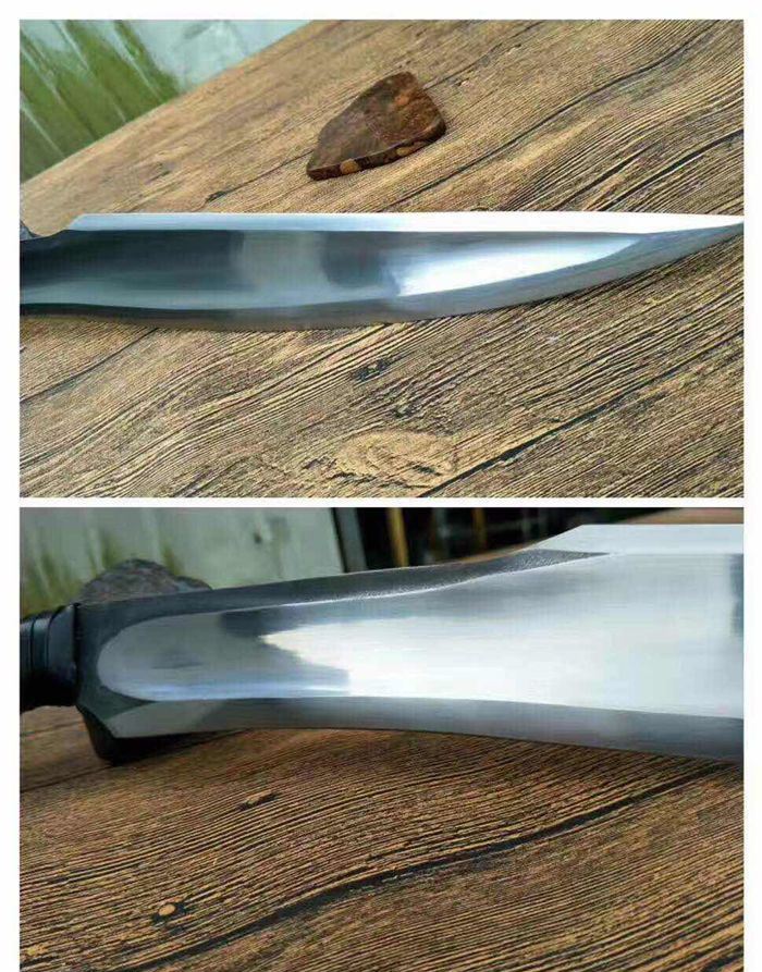 总长:68 刃长:50 柄长:18 宽:6 厚:0.5 材质:高性能高锰钢锻打 手工开大血槽 手工绕绳,血魔,霸气十足 傲人的骨骼,凶悍的姿态,让人蠢蠢欲动