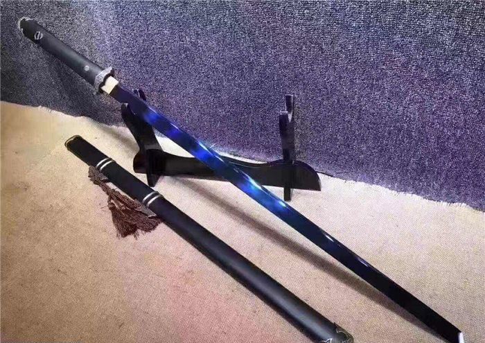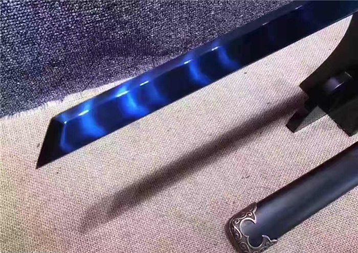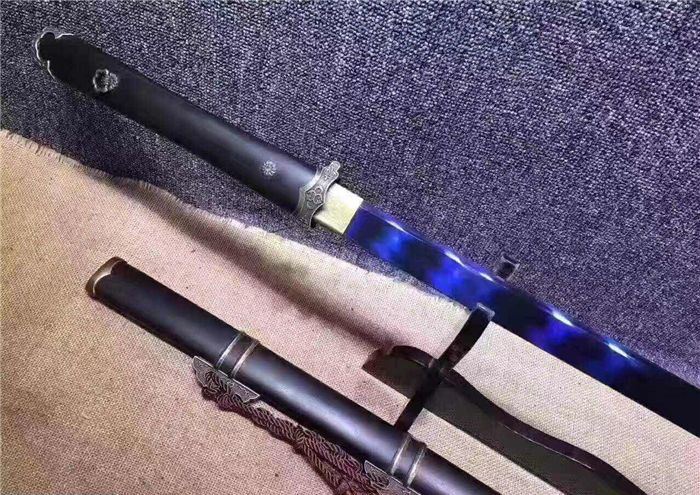 乌木拷蓝唐刀 全长:102 刃长:70 刃宽:3.1 手工锻打削纸砍竹砍铁丝秒过矿泉水瓶锋利 赠送佳品镇宅辟邪值得拥有送锦盒剑油