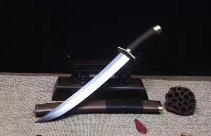 全长:53cm 刃长:33cm 柄长:15cm 刃宽:4cm 刃材:百炼花纹钢 送锦盒剑油 手工铜制工艺
